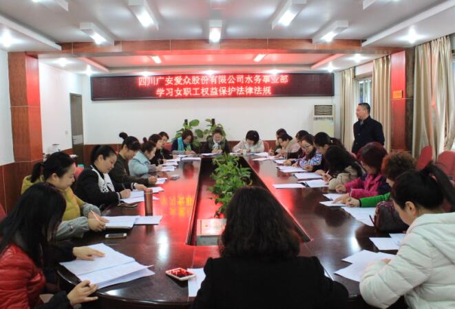 為促進保護女職工權益法律法規的貫徹落實,在“三八”婦女節即將來臨之際,水務事業部工會、女工委3月3日在三樓會議室組織女職工開展了女職工權益保護法律法規知識答題活動。