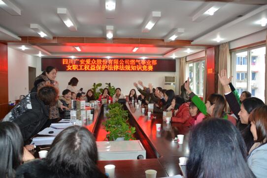 為促進女職工權益法律法規的貫徹學習,增強女職工學法、知法、用法和依法維護自身合法權益的意識和能力,3月8日,燃氣事業部舉辦了女職工權益保護法律法規知識培訓,并在培訓學習后,開展了迎“三八”女職工權益保護法律法規知識競賽。
